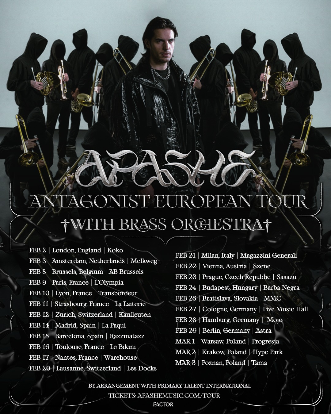 Des rythmes Reggaeton à la House, en passant par la Trap, le tout sur un fond classique, offrent une diversité musicale pour tous les goûts. Avec de vrais chœurs et un orchestre symphonique, « Antagonist » s’impose incontestablement comme l’héritier de son premier album, « Renaissance« . Malgré l’absence de collaboration avec Rosalia, l’album compte des artistes de renom tels que Busta Rhymes, Sofiane Pamart, Wasiu, et bien d’autres. On découvre ainsi 6 titres inédits, qui mit bout à bout nous offre un album d’exception. Le Belgo-Canadien a relevé avec succès ce défi audacieux, apportant une touche fraîche, novatrice et intemporelle. Apashe brille en tant qu’artiste accompli, atteignant le sommet de son art. Ses visuels somptueux, accompagnés d’une musique majestueuse, captivent grâce à l’œil avisé de Adrian Villagomez et Juliette Lossky ainsi que leur équipe (le clip de ‘Human‘ illustre ça à merveille). De la qualité du merch aux vinyles de l’album à venir (on attend la validation), tout est soigneusement orchestré. L’écouter est bien, mais vivre l’expérience unique de ses concerts, surtout avec ses ensembles cuivres, est incomparable. Ne tardez pas à réserver vos billets pour sa tournée européenne ! Pour rappel, le prince de l’opéra sera de passage dans 5 villes françaises !