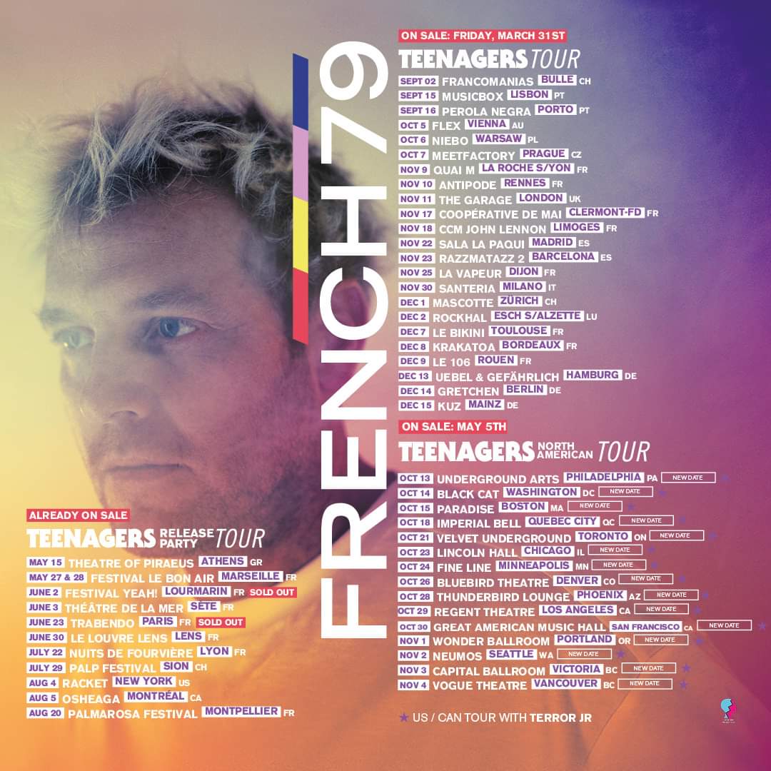 Pour célébrer et découvrir en live « Teenagers« , French 79 va parcourir le monde entier. Aucune excuse pour ne pas le voir ! De plus, suite à un rapide sold out du Trabendo, une nouvelle date parisienne s’est ajoutée : le 5 avril 2024, Zénith de Paris, rien que ça !