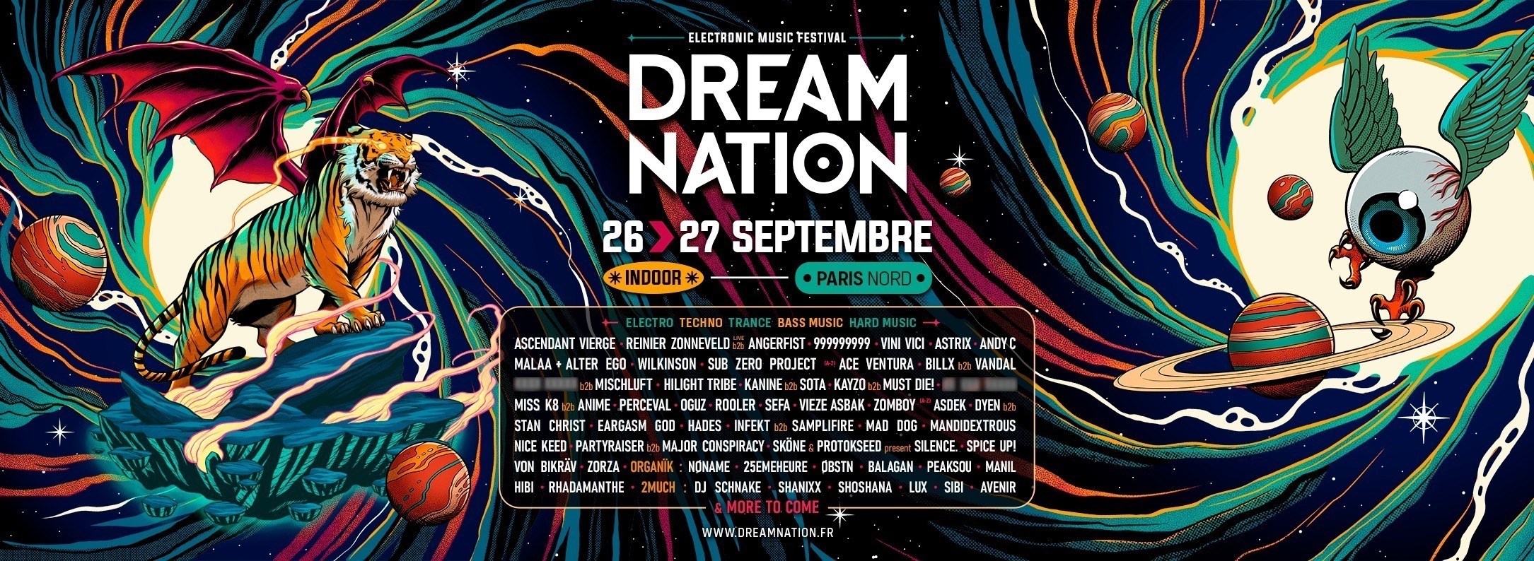 Dream Nation fait son retour au Parc des Expo Paris Nord les 26 et 27 septembre 2025. La première vague d’artistes nous dévoilait les 20 premiers noms de cette nouvelle édition, ainsi que les styles qui y seraient représentés. Le premier jour sera consacré à la techno avec avec 999999999 et Ascendant Vierge. La Hard Music sera également à l’honneur avec Sub Zero Project, SEFA, Vandal, ainsi que Von Bikräv. On retrouvera également Spice Up! (aka Vortek’s et Teksa) et Silence (aka Protokseed & Sköne). L’un des festivals électro de septembre et octobre à ne pas louper !