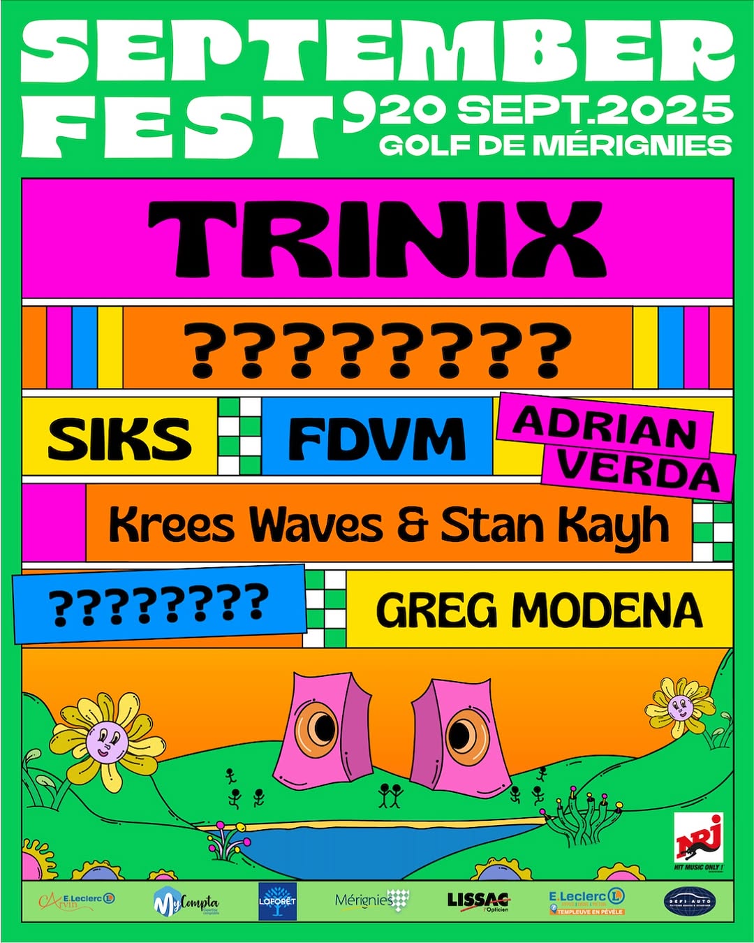 Le festival aura lieu le 20 septembre, toujours au Golf de Mérignies. L’ambition est plus grande pour cette année, avec une jauge à 5000 personnes. Le festival commencera donc à 16h, entre 3000 et 4000 places de parkings sont prévues. Côté programmation, on pourra retrouver le duo lyonnais Trinix, mais aussi Siks ainsi que le lillois FDVM.
