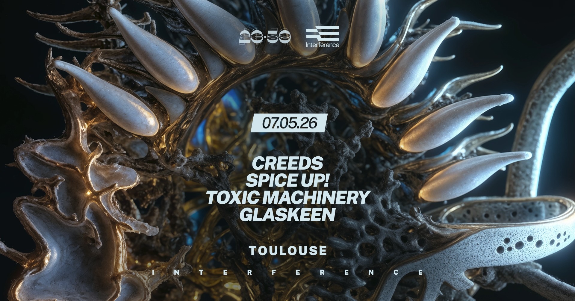 On aurait pu ouvrir un dictionnaire et énumérer tous les synonymes du mot “Destruction” pour vous décrire ce que nous évoque cet évènement et son line-up. Mais plutôt que de s’épandre de la sorte, on vous invite tout simplement à embarquer au plus vite dans le bus magique de 23:59 pour un aller simple vers le nirvana de la teuf en compagnie des fous du bus CREEDS, SPICE UP! (Vortek’s et Teksa), TOXIC MACHINERY et GLASKEEN. Et en plus, c’est une veille de jour férié !