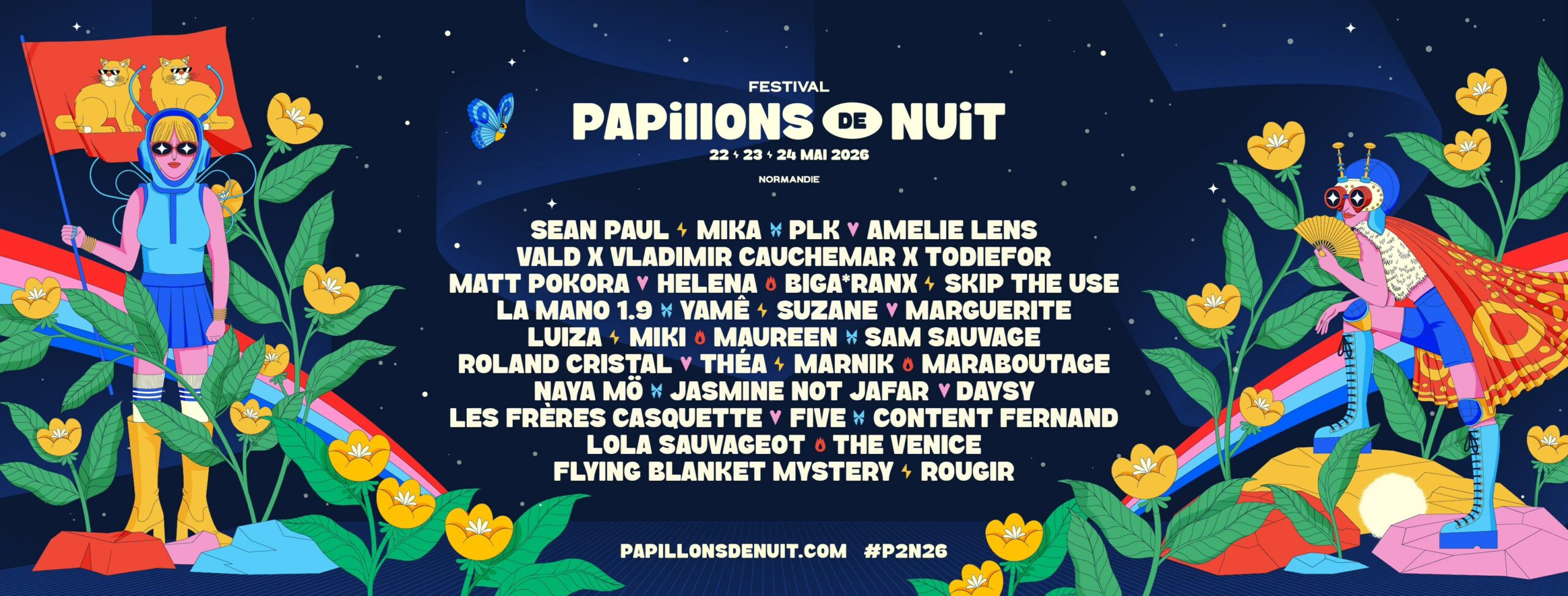 La 24e édition de Papillons de Nuit se déroulera les 22, 23 et 24 mai 2026 à Saint-Laurent-de-Cuves ! Une édition qui rassemble artistes incontournables, talents émergents et projets locaux pour 3 jours de musique, de découvertes et de convivialité au cœur de la Normandie. Préparez-vous à vivre trois jours de fête, de musique et de moments inoubliables !
