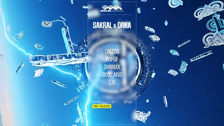 ORKA et SAKRAL se retrouvent à Mia Mao le 9 mai, dans la continuité de l’open air de jour à Aubervilliers. À l’affiche : Creeds, connu pour son track « Push Up« , accompagné de Popof. À leurs côtés : Shanixx, Skøllaris et Lūv. Une progression techno vers hard techno, fidèle à l’énergie de la coalition Sakral / Orka.