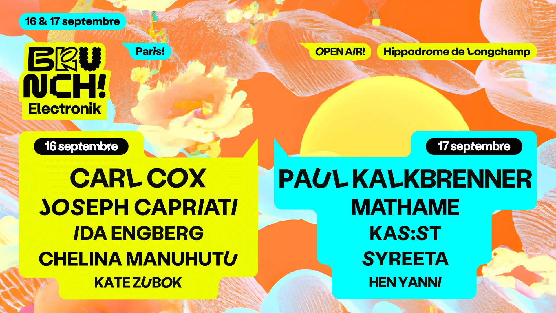 Le fameux Brunch Electronik pose ses valises à Paris les 16 et 17 septembre prochains, et vous devez absolument y être. Au programme de cet open air, 18h de son, avec notamment KAS:ST, Paul Kalkbrenner, ou encore la légende de la Techno Carl Cox ! On vous donne tous les détails de cette jolie fête ☀️
