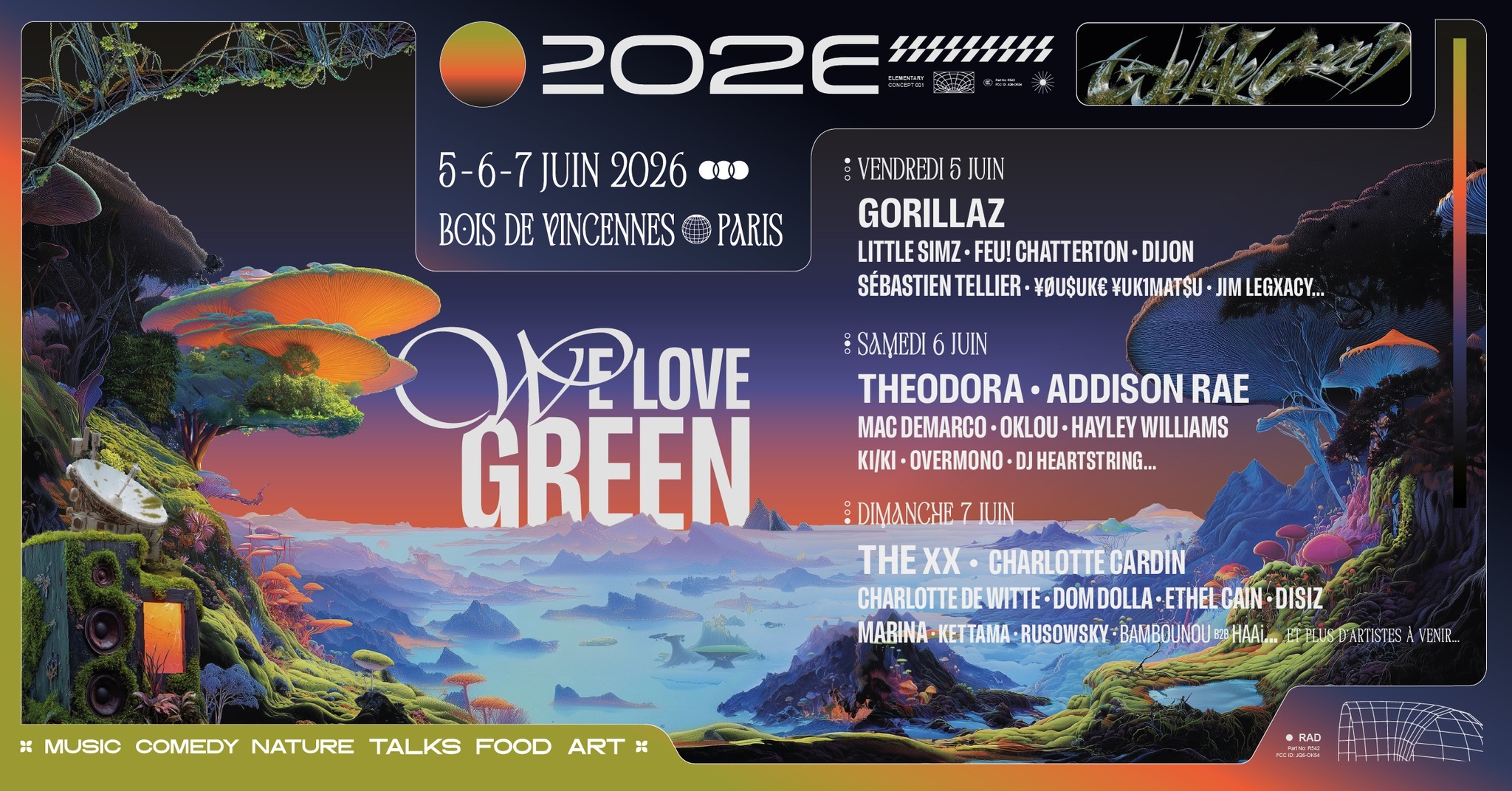 Vous l’avez compris, le festival sera LE rendez-vous de l’été. Entre têtes d’affiche internationales, pépites émergentes et débats engagés, We Love Green 2026 s’annonce comme une véritable promesse sonore et humaine. Du 5 au 7 juin, le Bois de Vincennes deviendra le cœur battant de la scène musicale alternative. Préparez vos baskets, votre énergie et surtout : ne ratez pas ça !