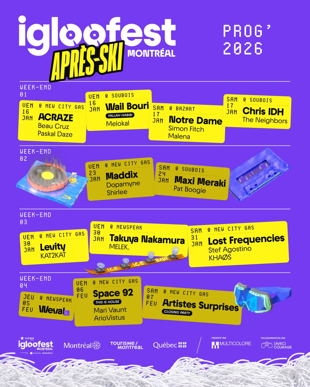 Le festival emblématique de Montréal igloofest revient du 15 janvier au 7 février 2026 ! Le programme s’annonce déjà chargé, avec notamment DJ Snake, Madeon, Lost Frequencies, The Blaze ou encore Trym !