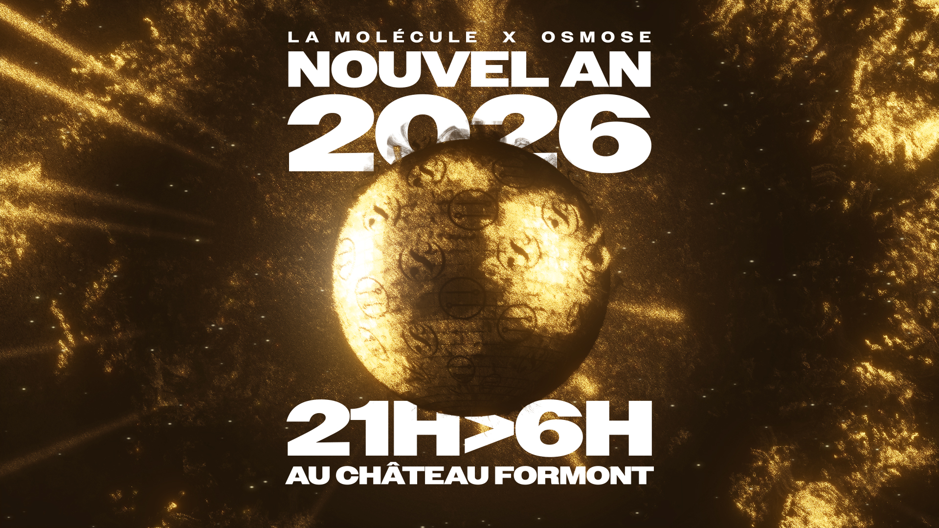 Cette année encore, La Molécule s’associe avec Osmose Festival pour vous faire vivre un passage en 2026 inoubliable ! Passez votre réveillon de 21h à 6h au Château Formont à 20 min de Bordeaux. On vous a prévu : un show light inédit, une scène 360°, une lineup aux petits oignons et un feu d’artifice à minuit pour lancer les hostilités. On retrouvera notamment Hortense de Beauharnais, Kuarz B2B Zudakabass, Suave ou encore Karl Line !