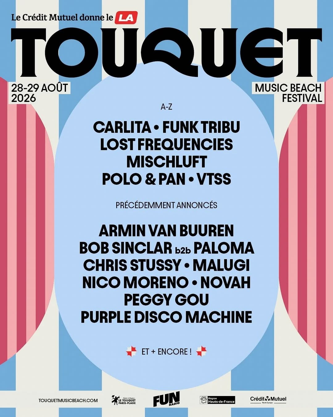 Doucement mais sûrement, le Touquet Music Beach Festival continue de dévoiler la programmation de son édition 2026. Après Armin Van Buuren, Peggy Gou, Nico Moreno ou encore Novah, 6 artistes viennent d’être annoncés : Lost Frequencies, Funk Tribu, Polo & Pan ou encore VTSS !