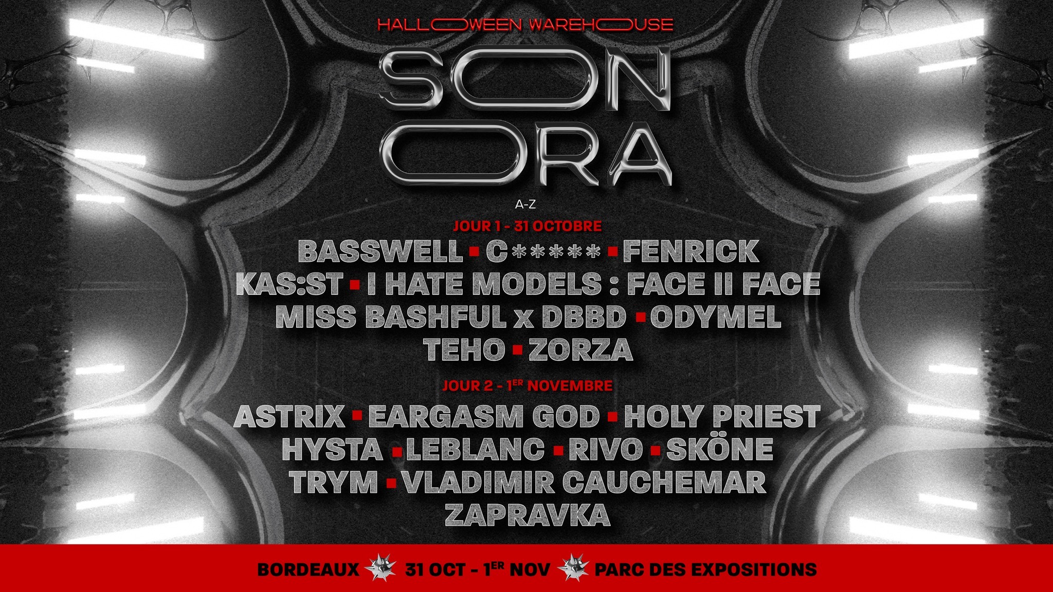 La plus grosse soirée hangar du Sud-Ouest revient pour une édition unique les 31 octobre et 1er novembre au Parc des Expositions de Bordeaux. Les deux soirées seront sous le signe d’Halloween bien sûr, mais aussi de la Techno, Hard Techno, Trance et Techno Mélodique. Sonora prépare un A/V show spécial pour l’occasion, avec 400m² d’écrans LED, dont 200m² sur le dancefloor, un système son surpuissant et bien sûr des lightshows impressionnants. Côté artiste, on vous laisse découvrir ce qui vous attend !