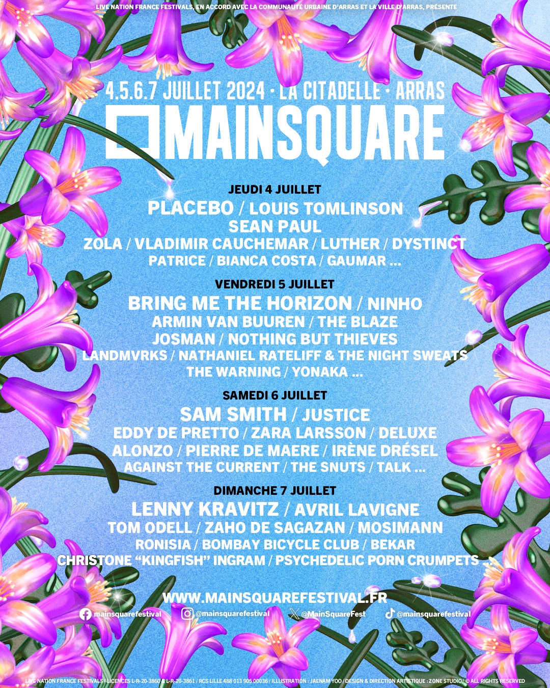 Alors que la côte de popularité du festival arrageois ne faiblit pas, sa 18ème édition arrive à grands pas. Et il faut dire que la barre a été mise très haute en 2023, avec un magnifique line-up et forcément un sold-out plusieurs mois avant le début. Le Main Square est forcément de retour en 2024, pour fêter les 20 ans du festival (mais sa 18ème édition). Et belle surprise, puisque le festival repasse sur un format 4 jours ! Ce format XXL avait déjà été tenté en 2022, en sortie de CoVid. Après une première annonce en décembre, le début de line-up était très prometteur, avec de belles surprises. En plus des belles têtes d’affiche pop/rock comme Lenny Kravitz, Avril Lavigne ou Sam Smith, l’électro est à l’honneur :