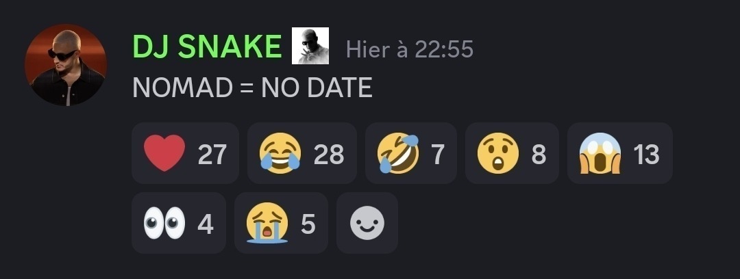 C’était l’événement de la rentrée. DJ Snake avait annoncé lors de son Stade de France que son troisième album « Nomad » allait voir le jour. Il avait même confirmé la date de sortie : le vendredi 5 septembre. La date était donc inscrite dans l’agenda de milliers de personnes. Suite à ce méga concert, plusieurs titres sont sortis, confirmant l’avancée de l’album. On pense notamment au hit « Paradise« , autour banger « Reloaded« , ou encore « Noventa« . Finalement, DJ Snake annonce dans son discord que son album « Nomad » était décalé :