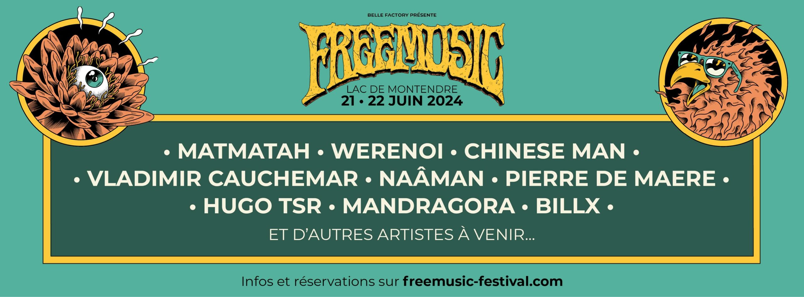 « Quoi de mieux que de fêter la musique et l’été directement en festival ? Cette année, ce sera possible au Freemusic, puisque les dates de ce fameux rendez-vous de Charente Maritime coïncideront avec le solstice d’été. Et l’atmosphère y sera tout aussi estivale puisque les festivités se dérouleront une fois de plus aux abords du lac de Montendre. Plage de sable, pins rafraîchissants, baignades et soleil serviront en effet de décor aux festivaliers. » – Electro News