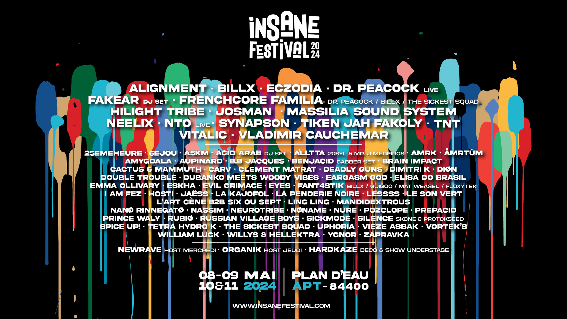 Gros changement pour l’Insane Festival ! Après de nombreuses problématiques lors de son édition 2023 (organisation et autre), de gros chantiers ont été lancé par l’équipe. Le plus gros changement reste au niveau des dates, puisque l’évènement initialement prévu au mois d’août, aura lieu en mai 2024 ! Il décalle également ses journées d’activité : l’Insane aura lieu du mercredi au samedi soir. Ensuite, l’équipe orga assure avoir mis les bouchées doubles sur place, pour le confort des festivaliers. Réponses en mai ! Mais en attendant, côté line-up on est plutôt bien servi : NTO, Bill X, Vitalic ou encore Vladimir Cauchemar ! Au fil des mois d’autres artistes se sont ajoutés comme Synapson, Fakear, William Luck, ainsi qu’une scène New Rave annoncée le mercredi.