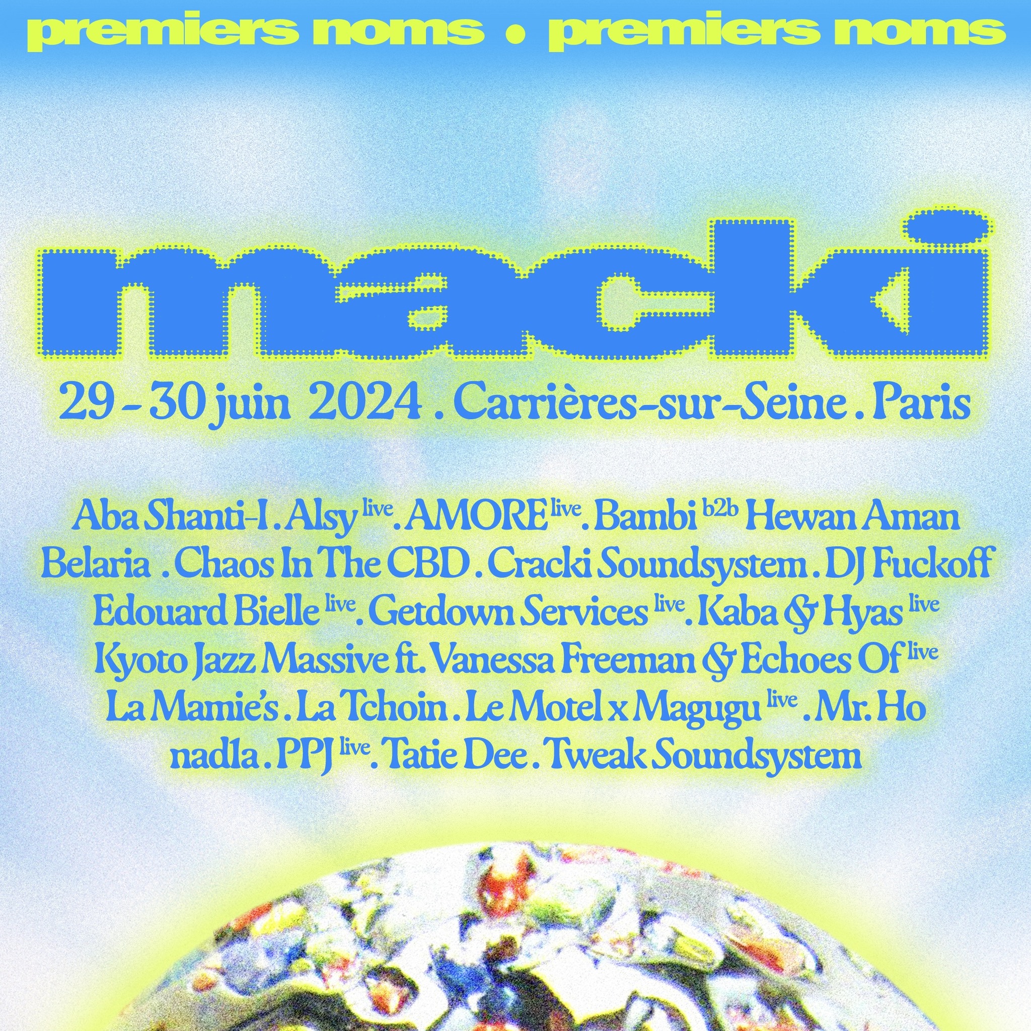 Depuis 2014, les collectifs parisiens La Mamie’s et Cracki Records s’unissent pour présenter le Macki Music Festival à Carrières-sur-Seine. Durant deux jours, ça « groove » sur les berges dans un esprit bon enfant et familial. La programmation musicale originale allie concerts et DJ’s sets, jazz et techno, ancienne et nouvelle génération. Le Festival n’est pas seulement apprécié et reconnu pour la qualité de sa direction musicale, il se fait aussi remarquer par l’originalité de ses affiches.