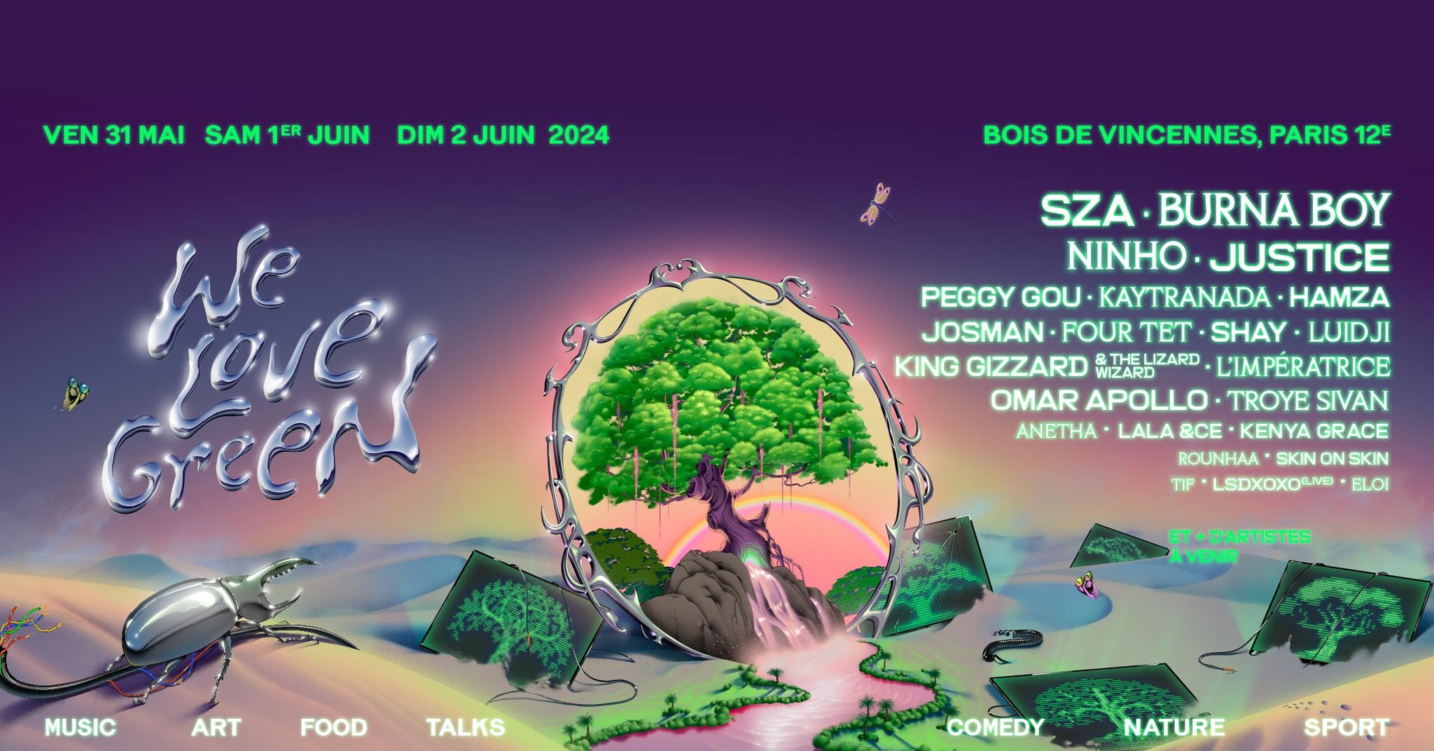 Le festival engagé est de retour au Bois de Vincennes revient avec un line-up éclectique, mêlant rap, pop et électro. Mais ce n’est pas tout, puisque l’évènement propose également des stands d’asso et entreprises à impacts positifs, des comédiens, mais aussi une restauration 100% végétarienne !  Pour rappel, l’an dernier, une journée avait dû être annulée à cause de fortes pluies. We Love Green appuie notre hype avec des grosses poitures de l’électro : Justice, Peggy Gou ou encore Kaytranada !