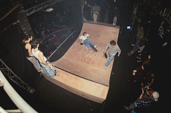 Et bien écoute, ça va ! On travaille avec un partenaire qui s’appelle Skate Pharma. C’est un pote de pote, avec qui on travaille depuis le début. Il a tout simplement une rampe de skate divisée en 4 parties qui se réemboîtent. Du coup c’est facilement transportable. Après il faut quelques personnes pour la décharger et la mettre sur scène, mais c’est un peu clé en main. On l’installe, on la protège et on fait en sorte que ça ne blesse personne pendant la soirée, et puis voilà ! Au début c’était vraiment un délire entre pote, et ça a pris existence. Donc non pas trop galère, juste une petite logistique !