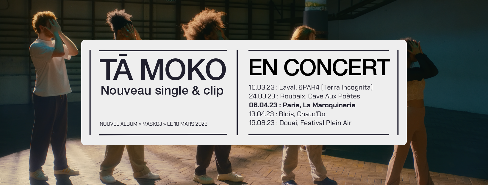 Mokado continue sur la lancée « Maskoj », et dévoile un nouveau titre de ce prochain album : « TA MOKO ». Le morceau nous invite à voyager, porté par une fougue électro aux inspirations maori. Un clip vient également appuyer cette dernière sortie avant l’album !