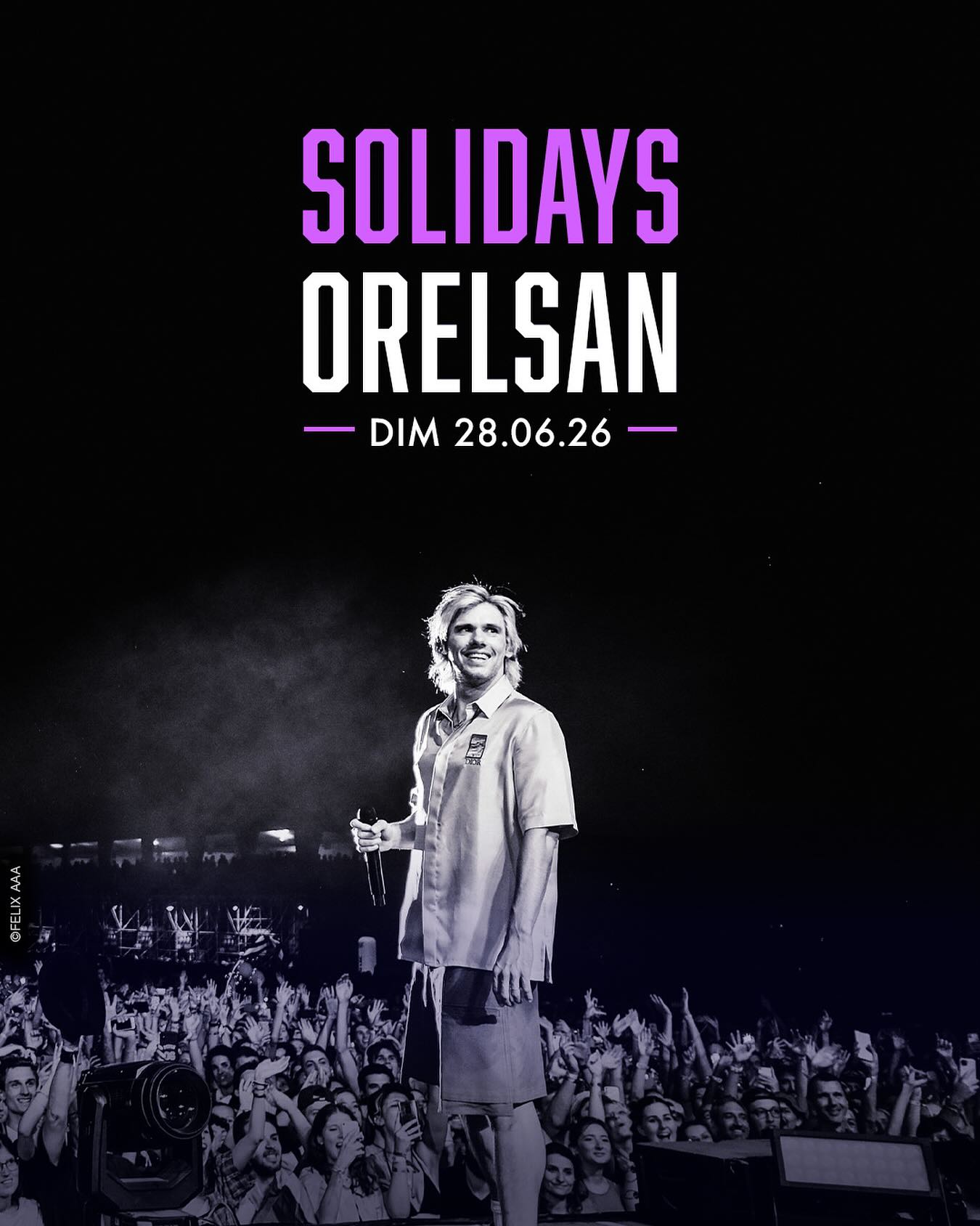 La 28ème édition du festival se précise ! Elle aura lieu du 26 au 28 juin 2026 à l’hippodrome de Longchamp. Côté artiste, on sait que le rappeur Orelsan, en tournée pour son album « La Fuite en Avant« , assurera le closing le dimanche soir. Une annonce d’artistes est d’ailleurs prévue ce mercredi 10 décembre, soyez prêts ! Enfin, l’info qu’on attend chaque année : la billetterie pour Solidays 2026 ouvrira ce samedi 13 décembre. Et si cette année fait autant de bruit chaque année, c’est parce que le festival met en vente 25 000 pass 3 jours, à partir de 39€ ! Rendez-vous le 13 décembre à 13h, et attention ça va aller très vite !