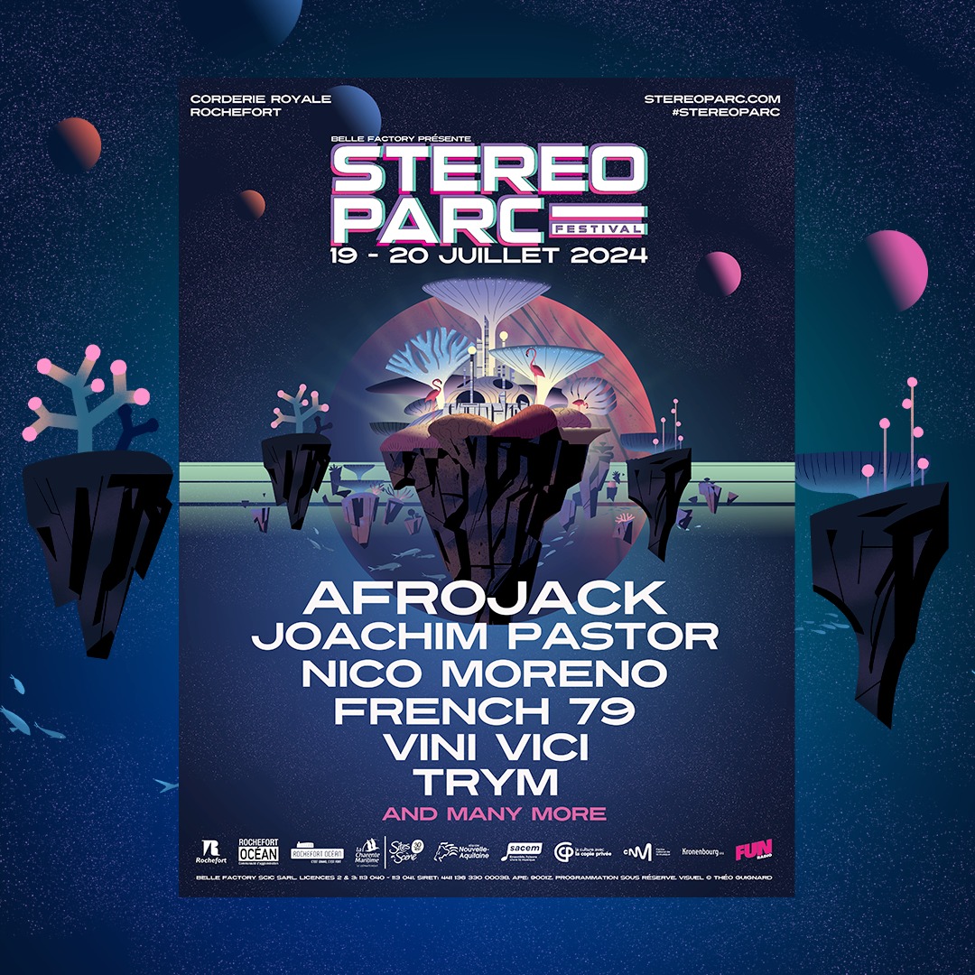 Cette année, Steroparc vise très gros avec un line-up riche et varié. On y retrouvera par exemple deux têtes d’affiche internationales : Afrojack et le duo Vini Vici. Mais ce n’est pas tout puisque la Hard Techno, le genre qui ne fait que monter, sera bien représentée avec les français Nico Moreno et TRYM ! Deux autres français (et ami) avec leur registre solaire bien à eux : Kid Francescoli et French 79. Et c’est pas fini ! La techno allemande sera représentée par Stella Bossi, tandis que la techno melodic le sera par Joachim Pastor. L’énigmatique Mr Tout Le Monde sera lui aussi de la partie, ainsi que les très attendu B2B entre Asdek et Ava Mind. Enfin, on pourra y découvrir Alice April et Sasson. Bref, rendez-vous pour l’immanquable Stereoparc Festival les 19 et 20 juillet, à Rochefort ! Pour les impatients, on vous dévoile la répartition des artistes par jour (la timetable arrive plus tard) :