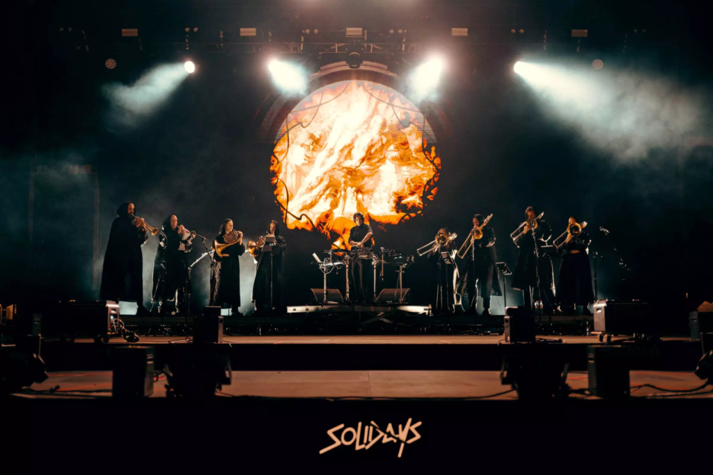 LAMOMALI a livré un concert généreux et vibrant, 1h30 d’une énergie incroyable portée par un mélange unique de musiques africaines, de rock et de rap. Zaho de Sagazan a offert quant à elle un temps suspendu, entre amour, sensibilité et engagement. Le grand moment électro de la journée fut sans doute APASHE avec son Brass Orchestra : si vous l’avez manqué au Zénith de Paris, son passage à Solidays était l’occasion rêvée de le découvrir. Ses titres s’accordent à merveille avec l’ensemble de cuivres, transformant la Mainstage en un véritable champ de bataille de pogos et de sauts, menés par les kicks ravageurs et la voix de Wasiu.