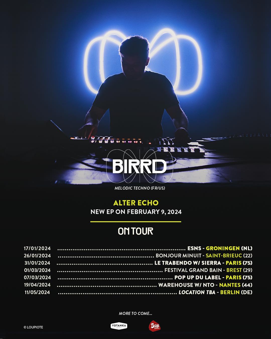 Birrd, c’est un artiste que l’on voit évoluer sur la scène électro techno / ambient depuis 2022. Il est signé chez Yotanka Records, et commence à s’imposer sur cette scène. Le producteur propose une musique électronique mélodique, à la fois planante, rêveuse et dansante. Car oui, sa discographie peut aussi bien s’écouter dans l’obscurité d’un club qu’être écoutée sur une plage ensoleillée. Il possède la triple nationalité française, américaine et italienne, et s’est déjà illustré lors des premières parties de Sierra à son Trabendo, et accompagnera NTO lors de son Warehouse de Nantes en avril prochain.